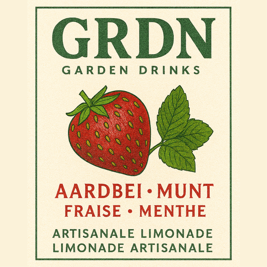 Smaakvolle natuurlijke frisdrank op basis van aardbei en munt, sprankelend. Heerlijke frisse dorstlesser, in Belgie geproduceerd.